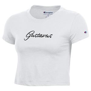 | Women's T-Shirt Champion Core Baby Gustavus White $24.99Price: $19.99• 60% cotton/40% polyester jersey • Set in rib collar • Crew neckline • Closer to body fit • 22" full body length • Screen print art Shirts: See more » |