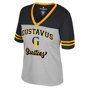 | Women's T-Shirt Colosseum Gustavus GA Gusties Grey $34.00Price: $27.20• 65% polyester/35% rayon • Crossover v-neck • Team color yoke and neck tape • Second color neckband and sleeve applique stripes • Waterbased print Shirts: See more » |