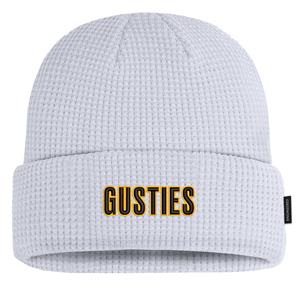 | Hat Nike Sideline Gustavus GA Waffle White $30.00Price: $20.00• 100% acrylic • 11" cashmere feel acrylic knit beanie with cuff and waffle knit texture • HD embroidery on center front cuff and center back cuff • Swoosh branding on loop woven label on back cuff edge • Tab woven label on wearers left side with authentic on-field ID • Embroidered art Caps, Hats, And Other Apparel: See more » |