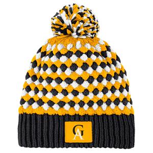 | Hat Colosseum Pom Beanie Woven GA Label Osfm Black/Gold/White $30.00Price: $20.00• Mid depth fit • Chunky knit crown • Chunky ribbed knit faux cuff • Polar fleece lining • Chunky yarn pom • Woven patch Caps, Hats, And Other Apparel: See more » |