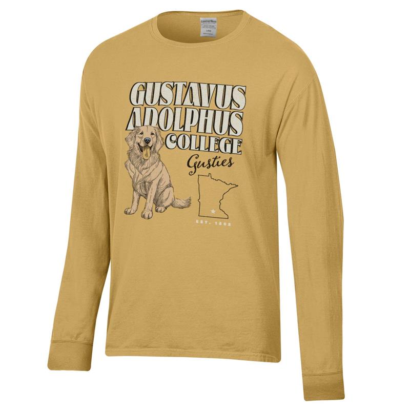 Long Sleeve T-Shirt Gear Comfort Wash Gustavus Adolphus College Gusties St Peter Dog Gold